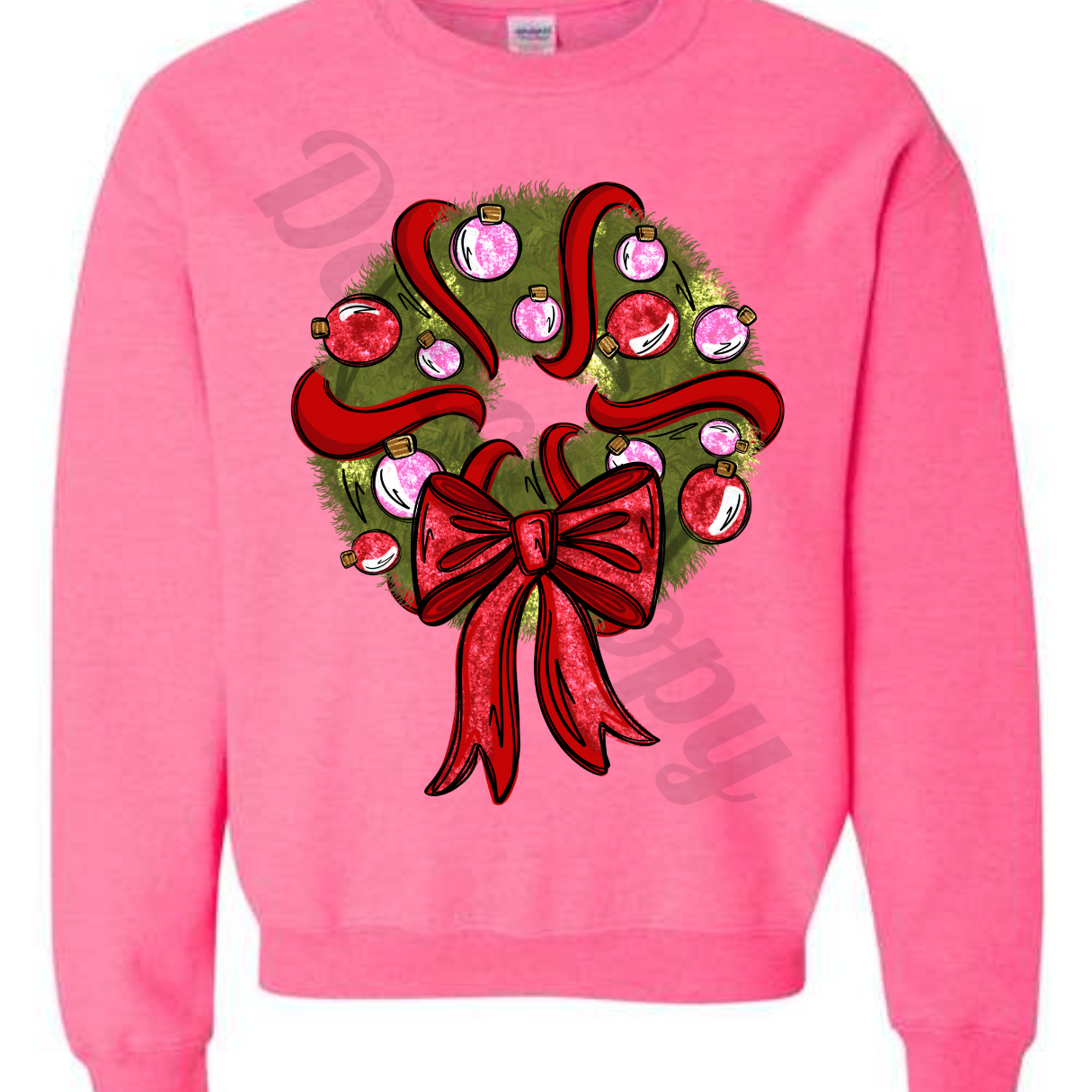 Ornaments and bow Christmas wreath